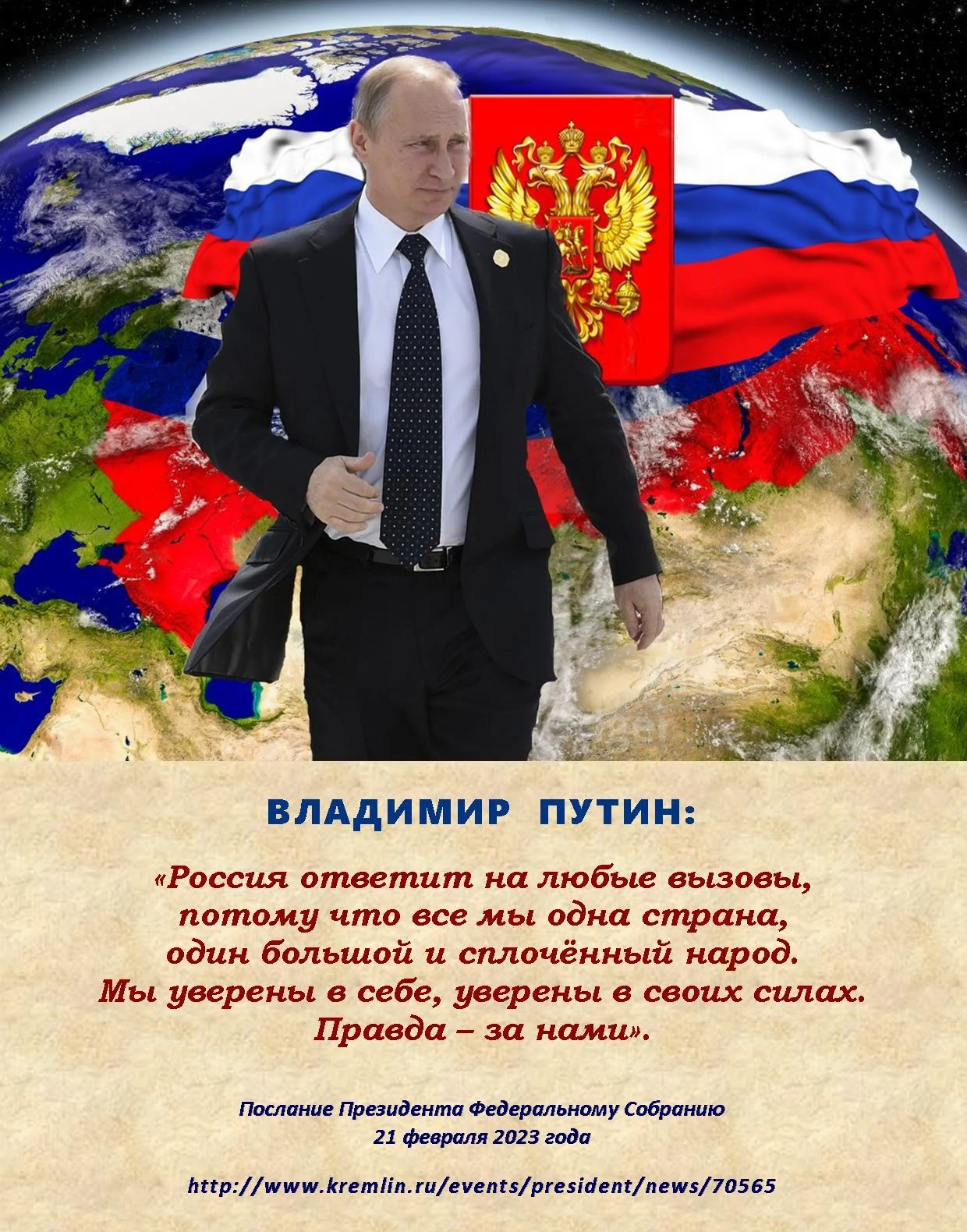 "Россия ответит на любые вызовы, потому что все мы одна страна, один большой и сплочённый народ. Мы уверены в себе, уверены в своих силах. Правда - за нами."